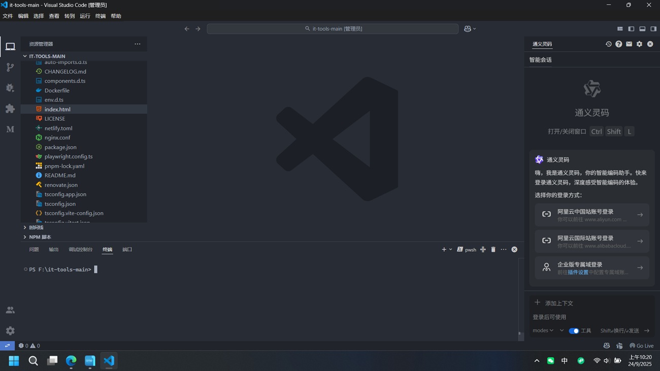 前往Github下载IT-Tools源码,然后用VS Code打开
